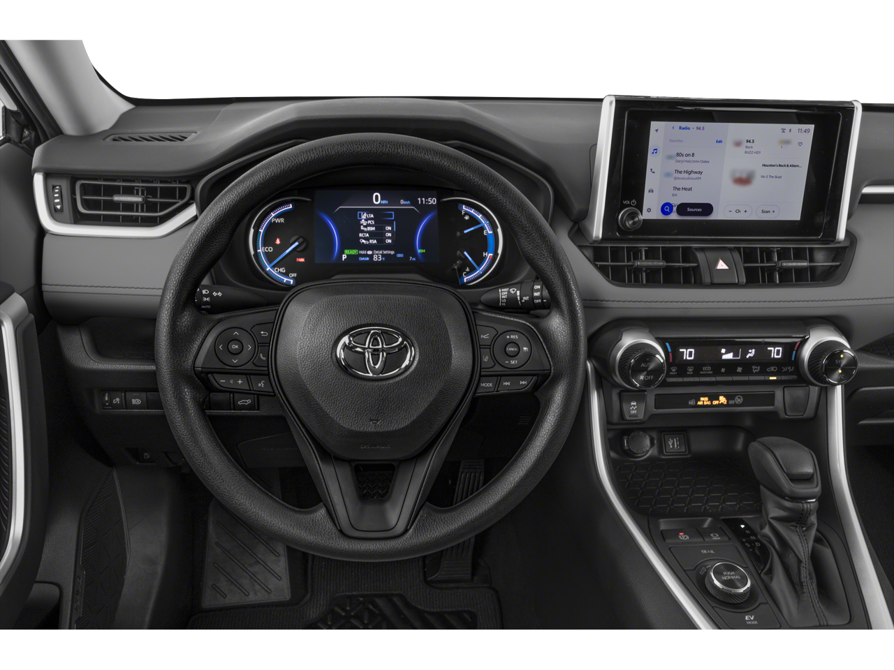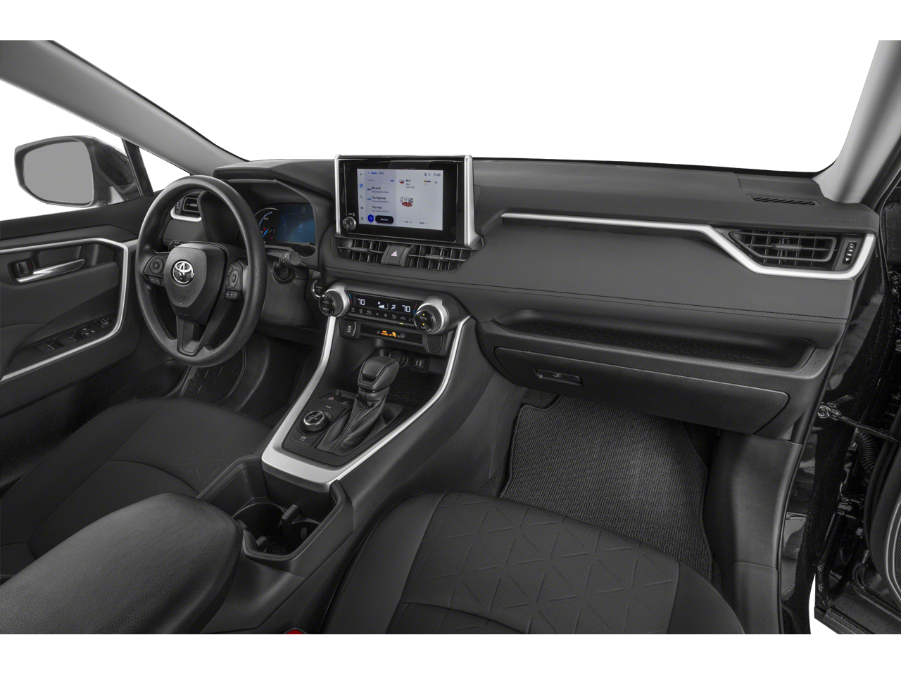 But the features don't stop there. This RAV4 Hybrid also boasts a Tilt & Slide Moon Roof, allowing you to let in natural light and fresh air with the touch of a button. The Front Door Smart Key System with Push Button Start ensures a seamless and convenient entry experience, while the Front Seat Heating and Heated 3-Spoke Leather Steering Wheel keep you cozy on those chilly mornings.